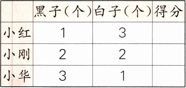 小华套中$3$个黑子和$1$个白子,则小华的得分是:
