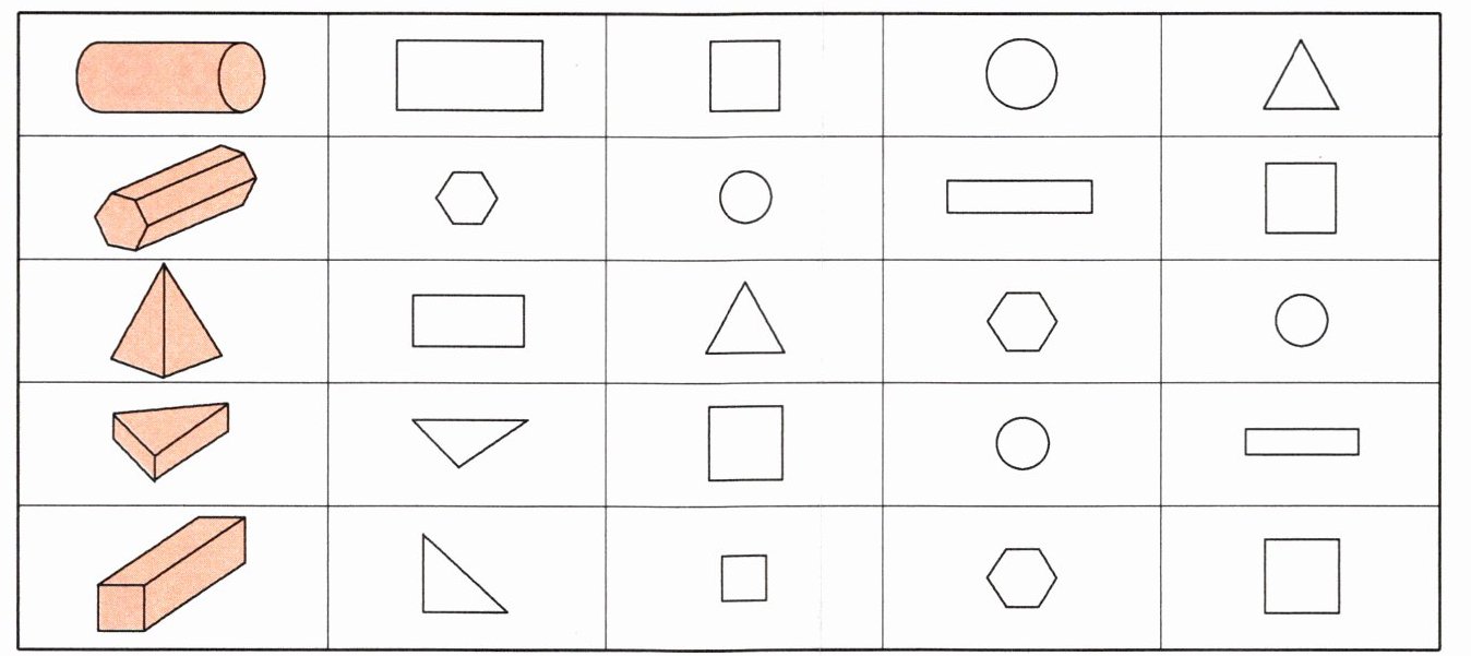 1. 圈一圈,用左边的积木可以印出右边的哪些形状?