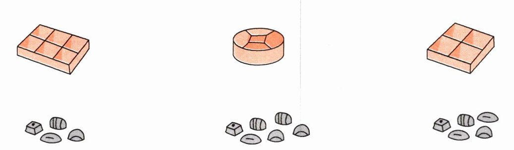 答案:将6个巧克力与6格盒子相连;将5个圆形巧克力与中间1个格子周围5个格子的盒子相连;将4个巧克力与4格盒子相连。(连线略)