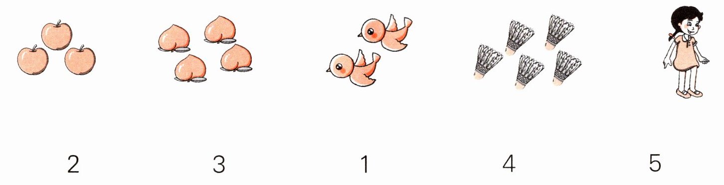 苹果连3,桃子连4,小鸟连2,羽毛球连5,小女孩连1。