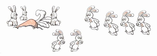 解析:本题考查加减法运算。图中左边有$5$只兔子,跑了$3$只,又来了$4$只。可列式为: