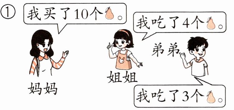 ①解析:考查加减法在实际问题中的应用,通过分析人物话语,用总数依次减去吃掉的数量,得到剩余数量。