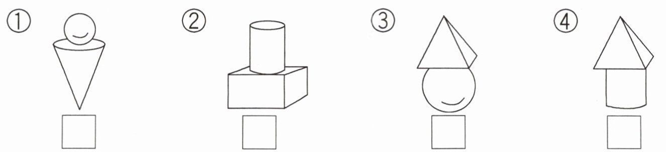③号图形:由一个圆锥和一个球体组成,球体放在圆锥的底面上,球体容易滚动,会导致整个图形不稳定,所以该组合图形不能立稳。