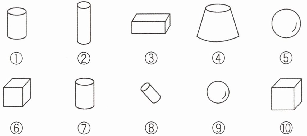 长方体:______ 正方体:______ 圆柱:______ 球:______