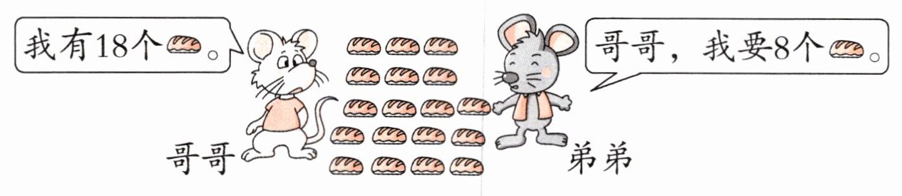 解析:本题考查减法在实际问题中的应用,需要用哥哥原有的面包个数减去弟弟要的个数,得到哥哥剩余的个数。