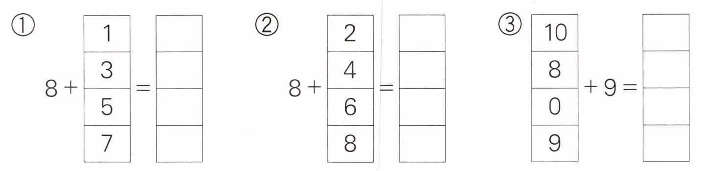① $8 + \begin{pmatrix} 1 \\ 3 \\ 5 \\ 7 \end{pmatrix} = \begin{pmatrix} __ \\ __ \\ __ \\ __ \end{pmatrix} \begin{pmatrix} __ \\ __ \\ __ \\ __ $