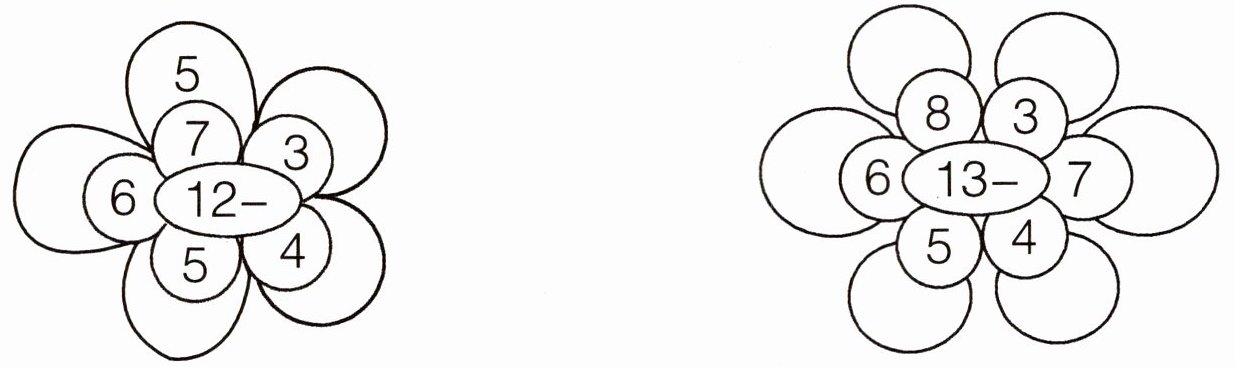 第二朵花:$13 - 4 = 9$,$13 - 5 = 8$,$13 - 7 = 6$,$13 - 8 = 5$,$13 - 3 = 10$。