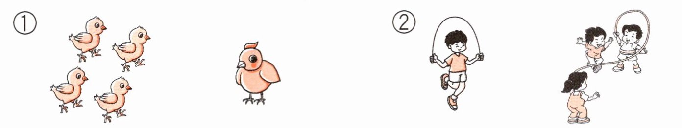 分析:图中左边有$1$个小朋友跳绳,右边有$3$个小朋友跳绳,求一共有多少个小朋友在跳绳,同样是把左边和右边的小朋友数量合起来,用加法计算。