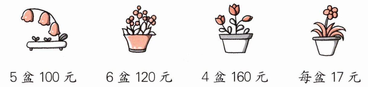 第二种:6盆120元,每盆价格为$120÷6 = 20$(元);