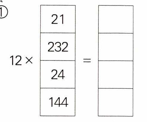 12×$\begin{bmatrix} 21 \\ 232 \\ 24 \\ 144 \end{bmatrix} $= $\begin{bmatrix}
