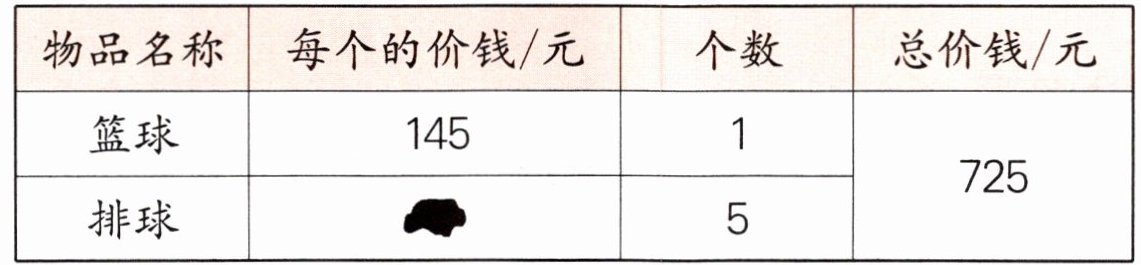 李老师不小心把购物小票弄脏了,请帮他算一算,每个排球多少钱?