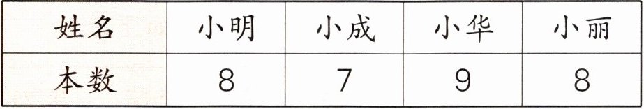 然后,比较每个同学读课外书的本数,找出读课外书最多的同学以及读课外书一样多的同学。