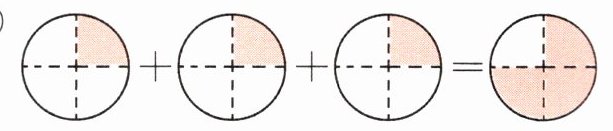 ①$ \frac{1}{4} + \frac{1}{4} + \frac{1}{4} = \frac{3}{4} $;