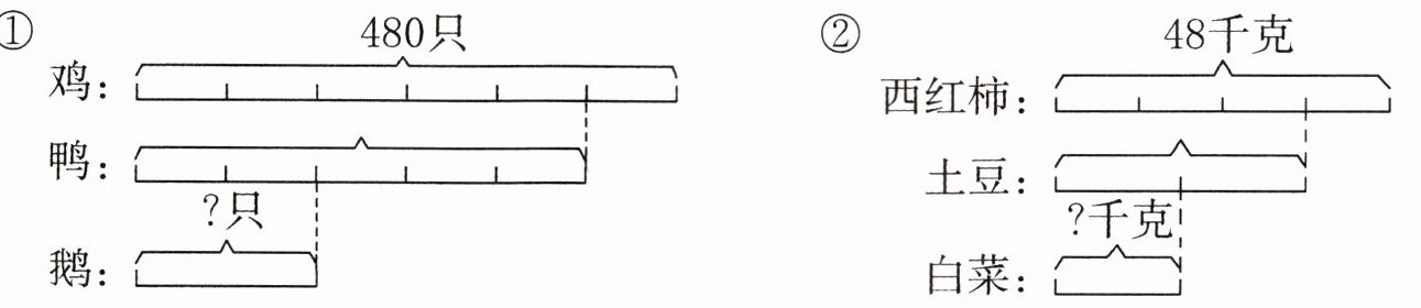 线段图显示鸡有480只,鸭的数量是鸡的$\frac{2}{3}$,鹅的数量是鸭的$\frac{1}{4}$,