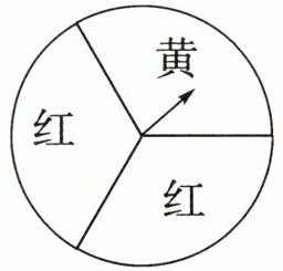 ①中转盘被平均分成3份,其中红色区域占2份,黄色区域占1份,红色区域面积大,所以指针停在红色区域的可能性大。