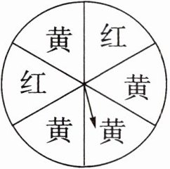 ②中转盘被平均分成6份,其中黄色区域占4份,红色区域占2份,黄色区域面积大,所以指针停在黄色区域的可能性大。