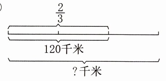图中总长度被平均分成3份,其中2份的长度是120千米,