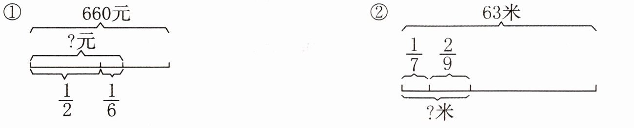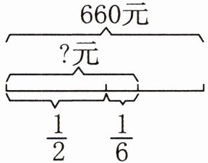 已知总数是$660$元,根据“求一个数的几分之几是多少用乘法”,则$660×(\frac{1}{2}+\frac{1}{6})$。