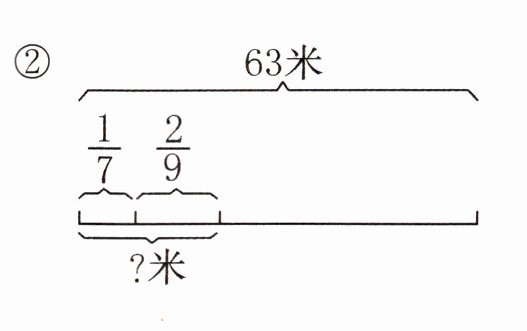 已知总数是$63$米,根据“求一个数的几分之几是多少用乘法”,则$63×(\frac{1}{7}+\frac{2}{9})$。