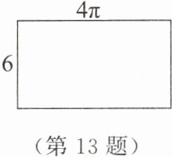 13. 如图所示的长方形是圆柱的侧面展开图,已知这个长方形相邻的两边长分别为 6,$ 4\pi $,求圆柱的体积。