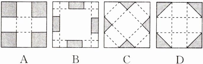 7. 下列四张正方形硬纸片,剪去阴影部分后,如果沿虚线折叠,可以围成一个封闭的长方体包装盒的是(