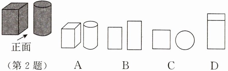 2. 如图,桌子上放着一个长方体的茶叶盒和一个圆柱形的水杯,它们从正面看到的形状图是(