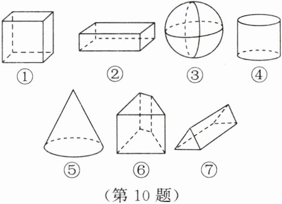 (1)①正方体 ②长方体 ③球 ④圆柱 ⑤圆锥 ⑥四棱柱 ⑦三棱柱