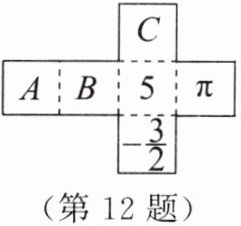12. 如图所示的是一个正方体纸盒的表面展开图,按虚线折成正方体后,若使相对面上的两个数互为相反数,则$A$,$B$,$C$表示的数依次为