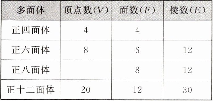 (2)顶点数(V)、面数(F)、棱数(E)之间存在怎样的关系?