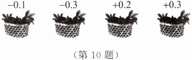 10. 杨梅开始采摘啦!每筐杨梅以$5kg$为基准,超过的千克数记为正数,不足的千克数记为负数,记录如图,则这 4 筐杨梅的总质量是(