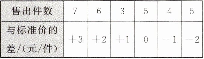 |与标准价的差/(元/件)|$+3$|$+2$|$+1$|$0$|$-1$|$-2$|