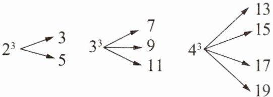 (综合与实践)一个大于 1 的自然数的立方,可以分裂成若干个连续奇数的和,如 $2^3 = 3 + 5$,$3^3 = 7 + 9 + 11$,$4^3 = 13 + 15 + 17 + 19$,…。若 $6^3$ 也按照此规律进行“分裂”,则 $6^3$ 分裂出的奇数中,最大的数是