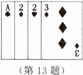 13. 小韦与同学一起玩“24 点”扑克牌游戏,即从一副扑克牌(去掉大、小王)中任意抽出 4 张,根据牌面上的数进行有理数混合运算(每张牌只能用一次),使运算结果等于 24 或 $-24$。小韦抽得的四张牌如图,“我得到 24 点了!”,他的算法是