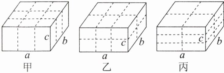 解:甲种方式用绳的长为4a+4b+8c,乙种方式用绳的长为4a+6b+6c,丙种方式用绳的长为6a+6b+4c。因为(4a+6b+6c)-(4a+4b+8c)=2b-2c>0,所以乙>甲;因为(6a+6b+4c)-(4a+6b+6c)=2a-2c>0,所以丙>乙。即丙>乙>甲。答:甲种方式用绳最少,丙种方式用绳最多。