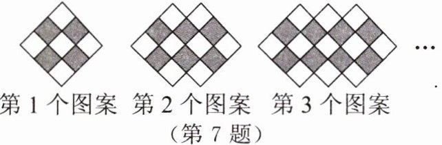 7. 如图,用灰、白两色正方形瓷砖铺设地面,第 n 个图案中白色瓷砖块数为
