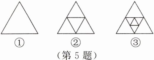 5. 图①是一个三角形,分别连接这个三角形的中点得到图②;再分别连接图②中间小三角形三边的中点,得到图③。按上面的方法继续下去,第 n 个图形中有