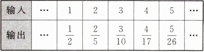|输出|…|$ \dfrac{1}{2} $| $ \dfrac{2}{5} $| $ \dfrac{3}{10} $| $ \dfrac{4}{17} $| $ \dfrac{5}{26} $|…|