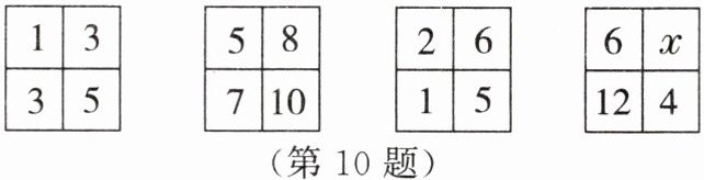 10. 在下列 $ 2×2 $ 的方格中找出规律,则 x 应是(