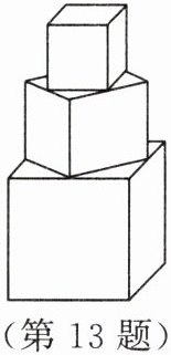 13. 如图所示的是由若干个正方体形状的木块堆成的几何体,平放在桌面上。其中,上面正方体的每个面的面积恰好是下面正方体每个面面积的 $ \dfrac{1}{2} $,最下面的正方体的棱长为 1。