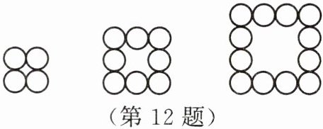 12. 国庆期间,小区物业用花盆装点院落。下列的每一个图案都是由若干个花盆组成的正方形图案。
