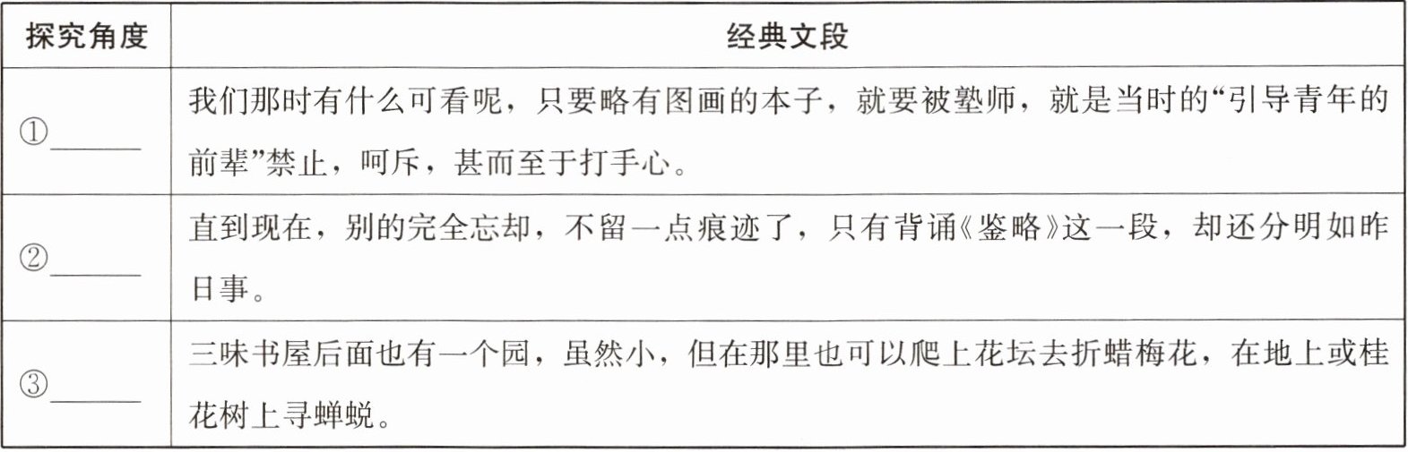 |②______|直到现在,别的完全忘却,不留一点痕迹了,只有背诵《鉴略》这一段,却还分明如昨日事。|