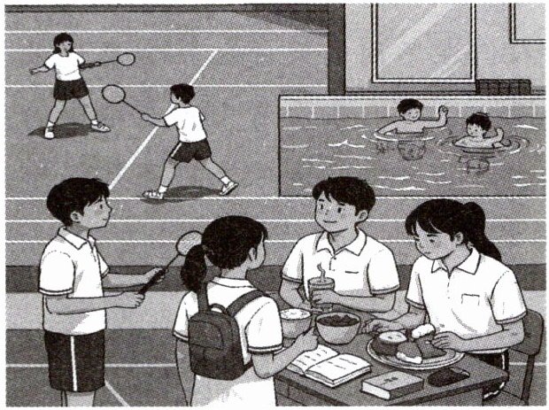 (一)请观察图片中学生的活动,并写出相应的短语。