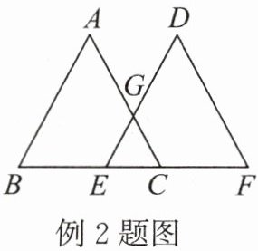 例 2 如图,已知△ABC≌△DEF,且点 B,E,C,F 在同一条直线上。
