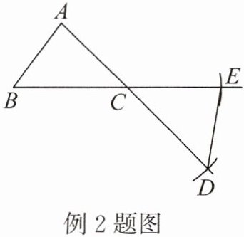 例2 如图,延长AC,在AC的延长线上截取CD = CB,延长BC,在BC的延长线上截取CE = CA,则这两个三角形全等的依据是______(写出全等依据的简写)。