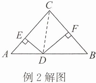例2 如图,在等腰三角形$ABC$中,$AC = BC = 5$,$S_{\triangle ACB}= 10$,$D为底边AB$上一动点,$DE\bot AC$,$DF\bot BC$,垂足分别为$E$,$F$,则$DE + DF= $