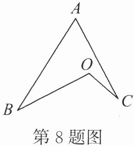 8. 如图,已知$\angle A = 60^{\circ}$,$\angle B = 30^{\circ}$,$\angle C = 20^{\circ}$,求$\angle BOC$的度数。