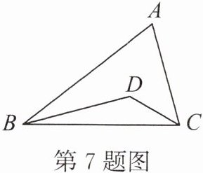 7. 如图,在$\triangle ABC$中,$\angle A = 40^{\circ}$,点$D是\angle ABC和\angle ACB$的平分线的交点,求$\angle BDC$的度数。