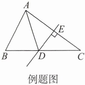 例 如图,$\triangle ABC的周长为21\mathrm{cm}$,边$AC的垂直平分线DE交BC于点D$,点$E$为垂足,$AE = 3\mathrm{cm}$,求$\triangle ABD$的周长。
