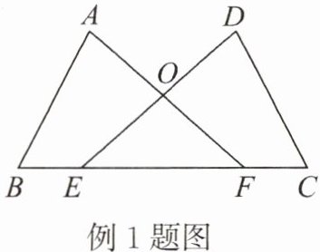 例1 如图,点E,F在BC上,BF= CE,∠A= ∠D,∠B= ∠C,AF与DE交于点O。试判断△OEF的形状,并说明理由。