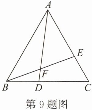 9. 如图,已知△ABC为等边三角形,点D,E分别在边BC,AC上,且BD= CE,AD与BE相交于点F。
